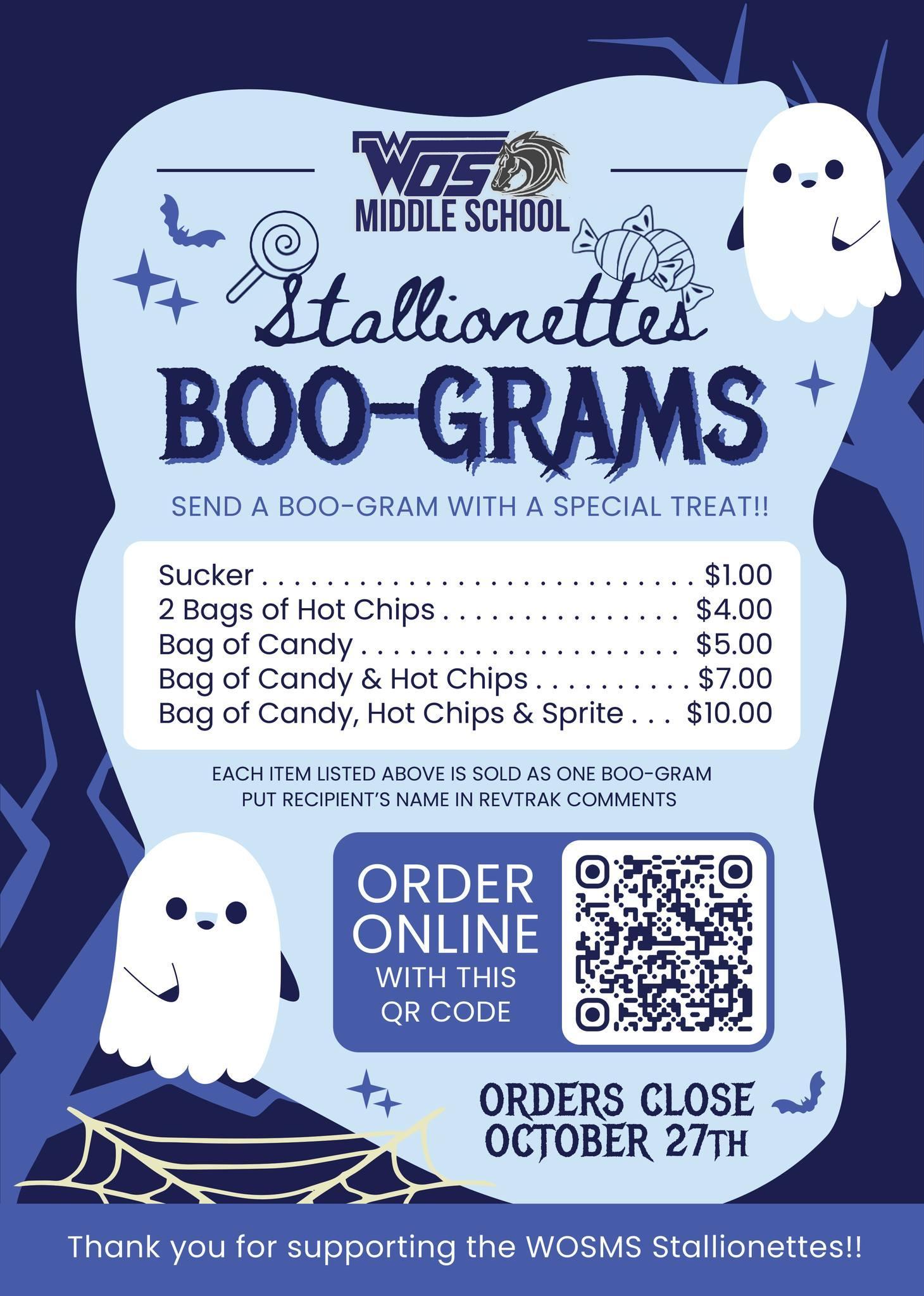 It's that spooky time of year, and that means it's time for the Stallionettes Boo-Grams! Send a Boo-Gram with a special treat and help support your WOSMS Stallionettes!